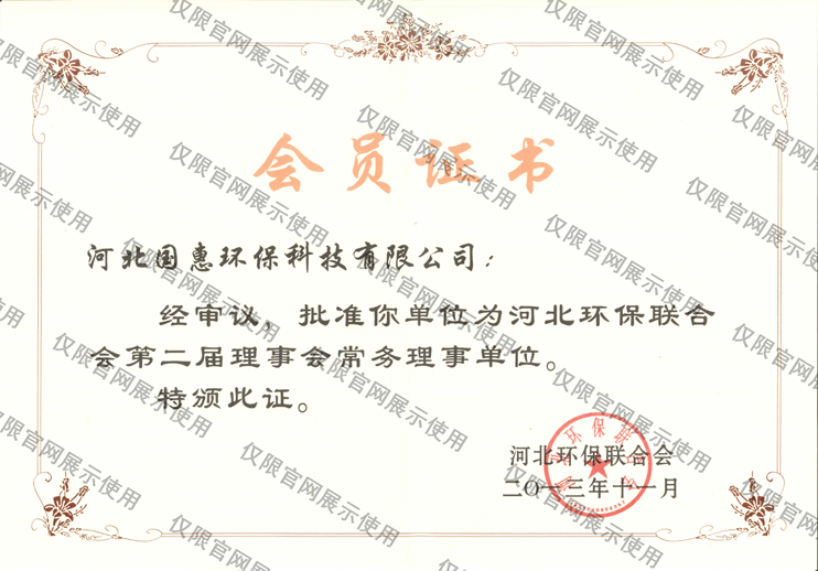 河北環(huán)保聯(lián)合會(huì)會(huì)員單位證書