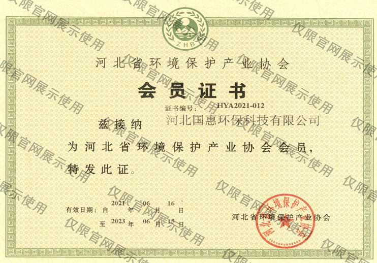 河北省環(huán)境保護(hù)產(chǎn)業(yè)協(xié)會(huì)會(huì)員證書