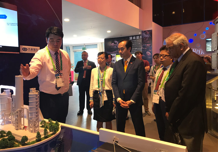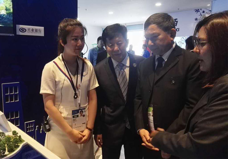 新加坡貿(mào)工部兼國家發(fā)展部政務(wù)部長許寶琨參觀展臺(tái)