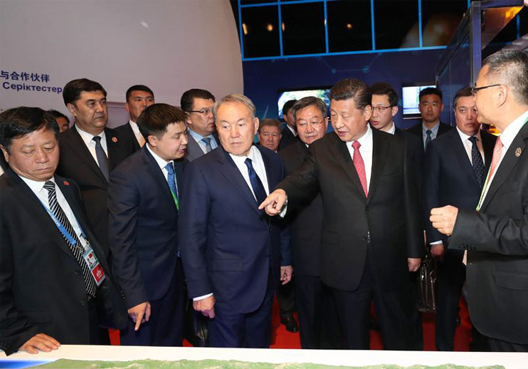 中國國家主席習(xí)近平同哈薩克斯坦總統(tǒng)一道參觀阿斯塔世博會(huì)中國館