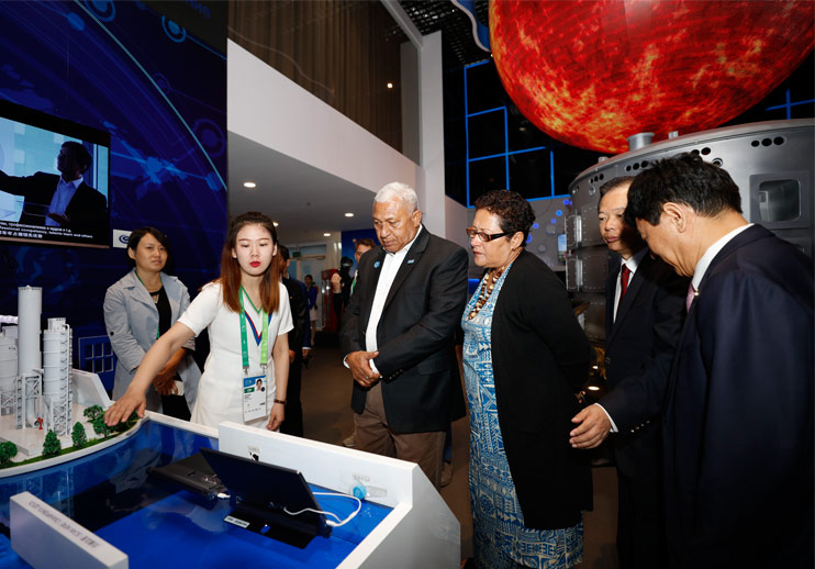 斐濟(jì)總理姆拜尼馬拉馬參觀展臺(tái)
